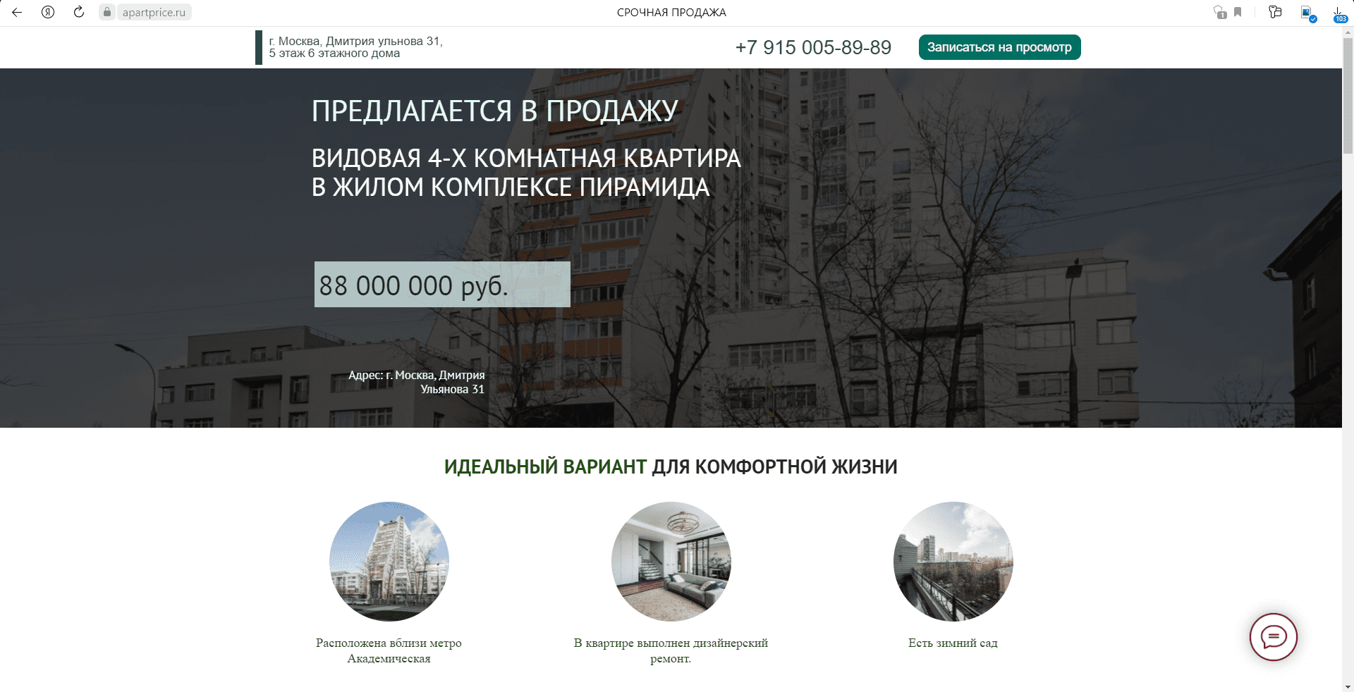 Landing page(сайта) для объекта для привлечения потенциальных покупателей